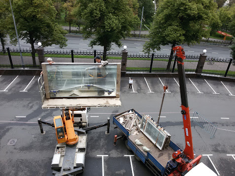 Летом 2014г наша компания выполняла работы по установке витража из теплых алюминиевых профилей в здании Администрации президента по адресу: Никольский пер., д.6. Общий объем работ 128,03 м.кв.