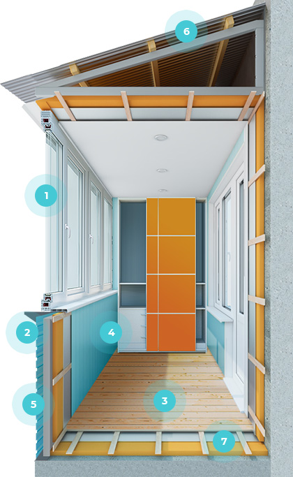 Отделка лоджии под ключ помимо остекления подразумевает качественный ремонт помещения, с учетом всех пожеланий заказчика. Строительные работы выполняются с использованием высококачественных и экологически безопасных материалов. Наиболее востребованными считаются ПВХ панели, евровагонка и сайдинг. Не стоит забывать и про антигрибковую обработку стен, пола и потолка перед утеплением поверхностей. Наши специалисты устранят все щели и дыры, а также заделают стыки между стеной и утеплителем. Дополнительный уют и комфорт создадут проложенная электрика и системы отопления.